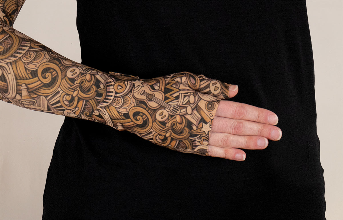 LympheDIVAs Beat Gradient Compression Gauntlet provides graduated compression support into the hand to help manage hand lymphedema. This gauntlet is designed to be worn with a compression arm sleeve, which provides compression at the wrist; the gauntlet’s wrist is intentionally constructed to avoid overlapping or double compression. Featuring the rhythmic Beat pattern, it combines medical-grade function with expressive style. Made in the USA, this compression gauntlet is crafted from breathable, moisture-wicking fabric for comfortable, all-day wear.