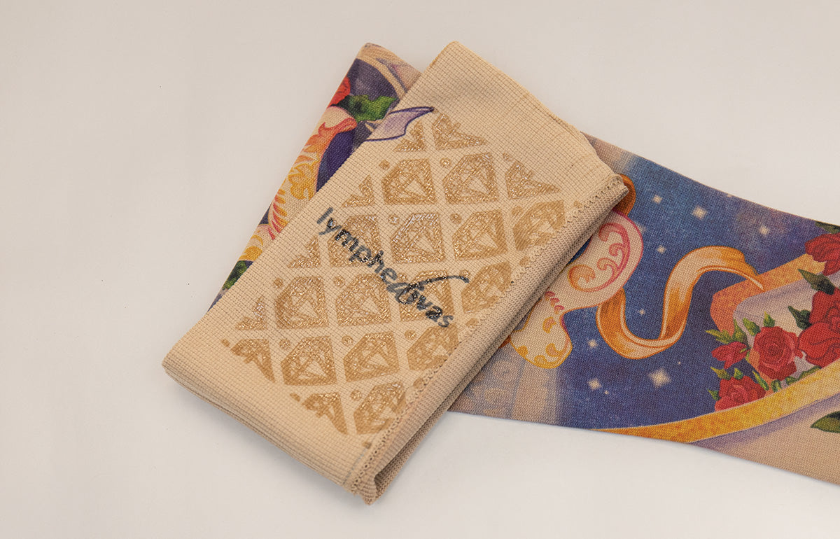 Venice is a richly detailed compression arm sleeve pattern inspired by the romance and artistry of Venetian masquerades. Featuring elegant masks, swirling ribbons, florals, and dreamy night-sky hues, this sleeve creates the look of a full tattoo while delivering therapeutic compression. Perfect for fashion lovers who want a dramatic, artistic way to express themselves, Venice blends comfort, performance, and unforgettable style. Crafted with LympheDIVAs’ signature seamless knit, moisture-wicking fabric, and 4-way stretch, Venice turns medical compression into wearable storytelling.